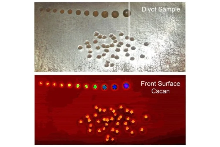 All AIS systems record raw waveforms at high speed and resolution. Fast imaging and analysis algorithms condense this large quantity of data into useful information. Doing so ensures value and quality. A number of data examples highlighting versatility are shown below. Most images are shown in Cscan format, a plan view from the top. All data acquired can be imaged in Cscan, Bscan, B'Scan, Stacked Ascans, and Ascan format. From the high resolution images, the operator only needs to burrow down into the raw wave forms to characterize and measure any anomalies or indications in a timely manner.